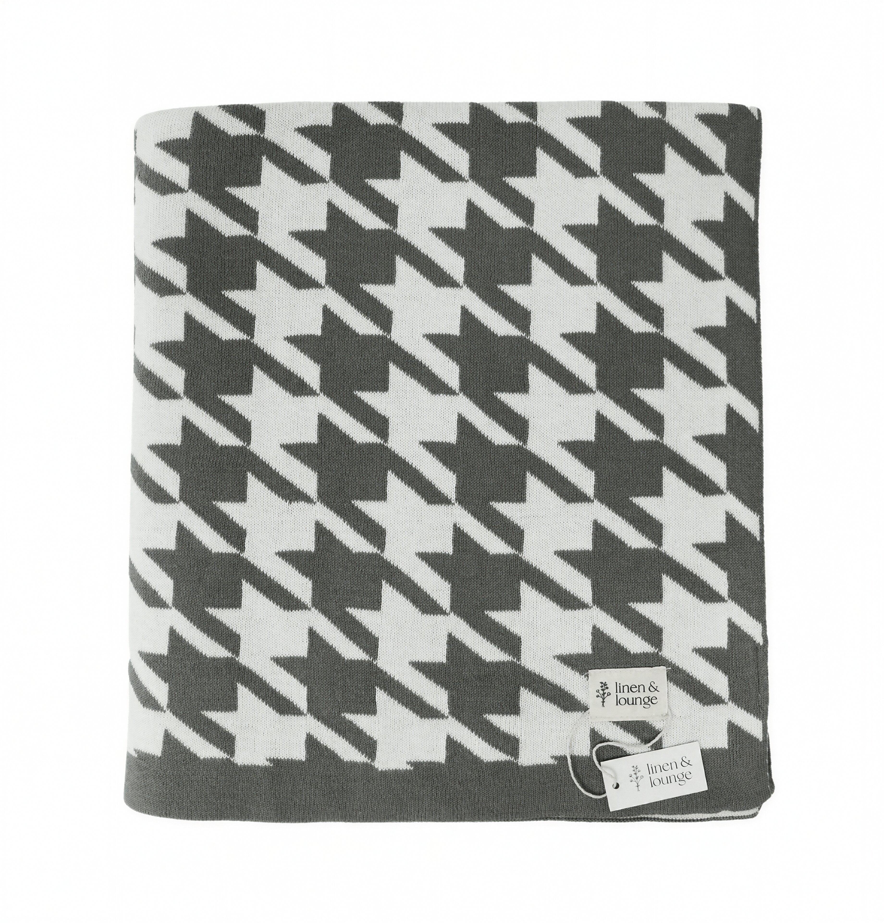 Comfy and warm, our 100% cotton throws are made for sharing! This stylish home decor accent is easy to wash and available in grey and white. Set in a rich houndstooth design, this stylish addition is just waiting to warm up your home, or be gifted to someone you want to impress.