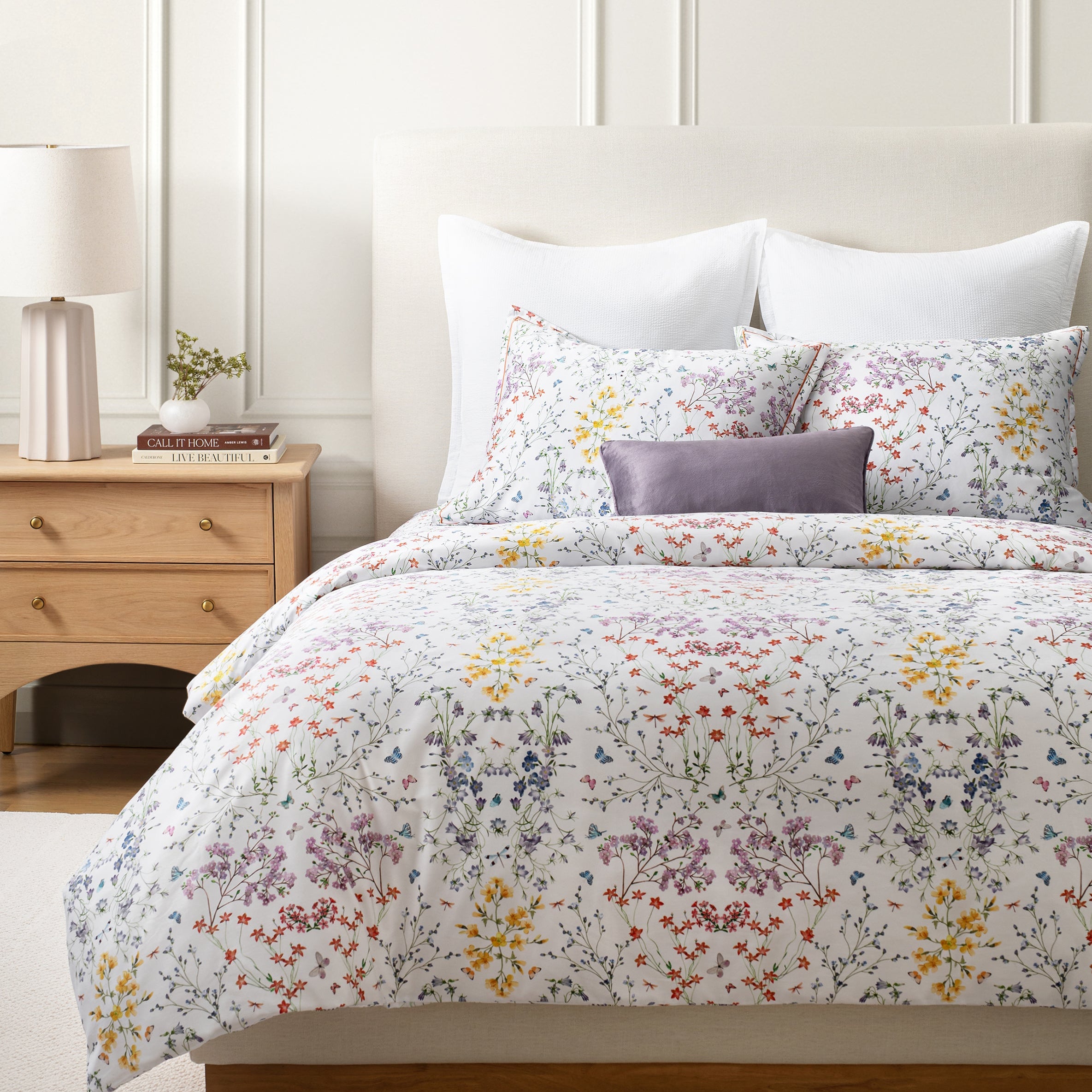Enjoy a luscious garden in your bedroom with Eden! This fully printed ensemble—duvet, shams, and sheets—is filled with whimsical butterflies and colorful wildflowers that evoke the feeling of springtime, no matter the season: fresh, vibrant, and full of life.