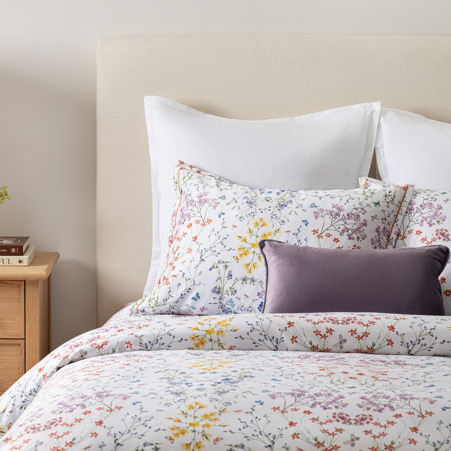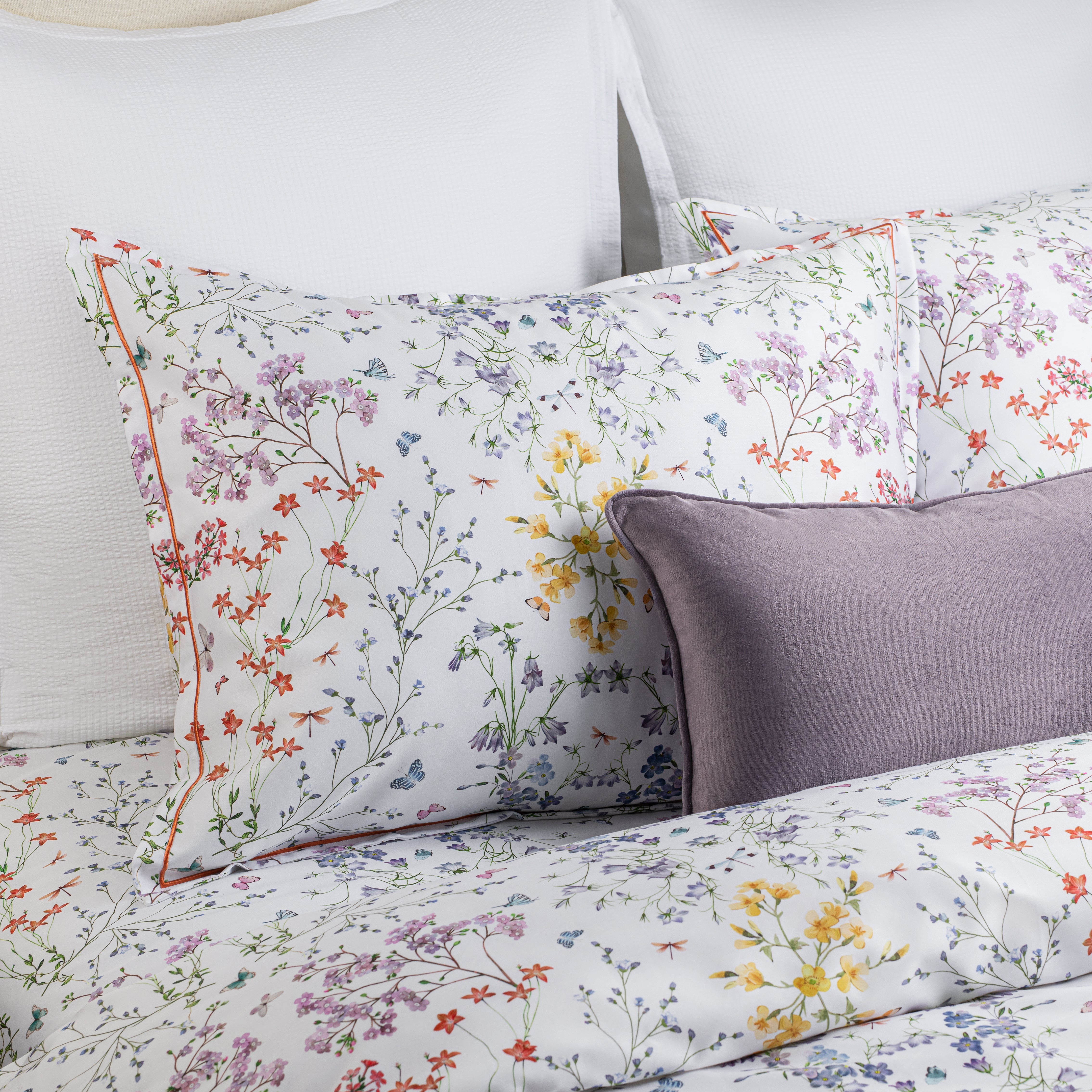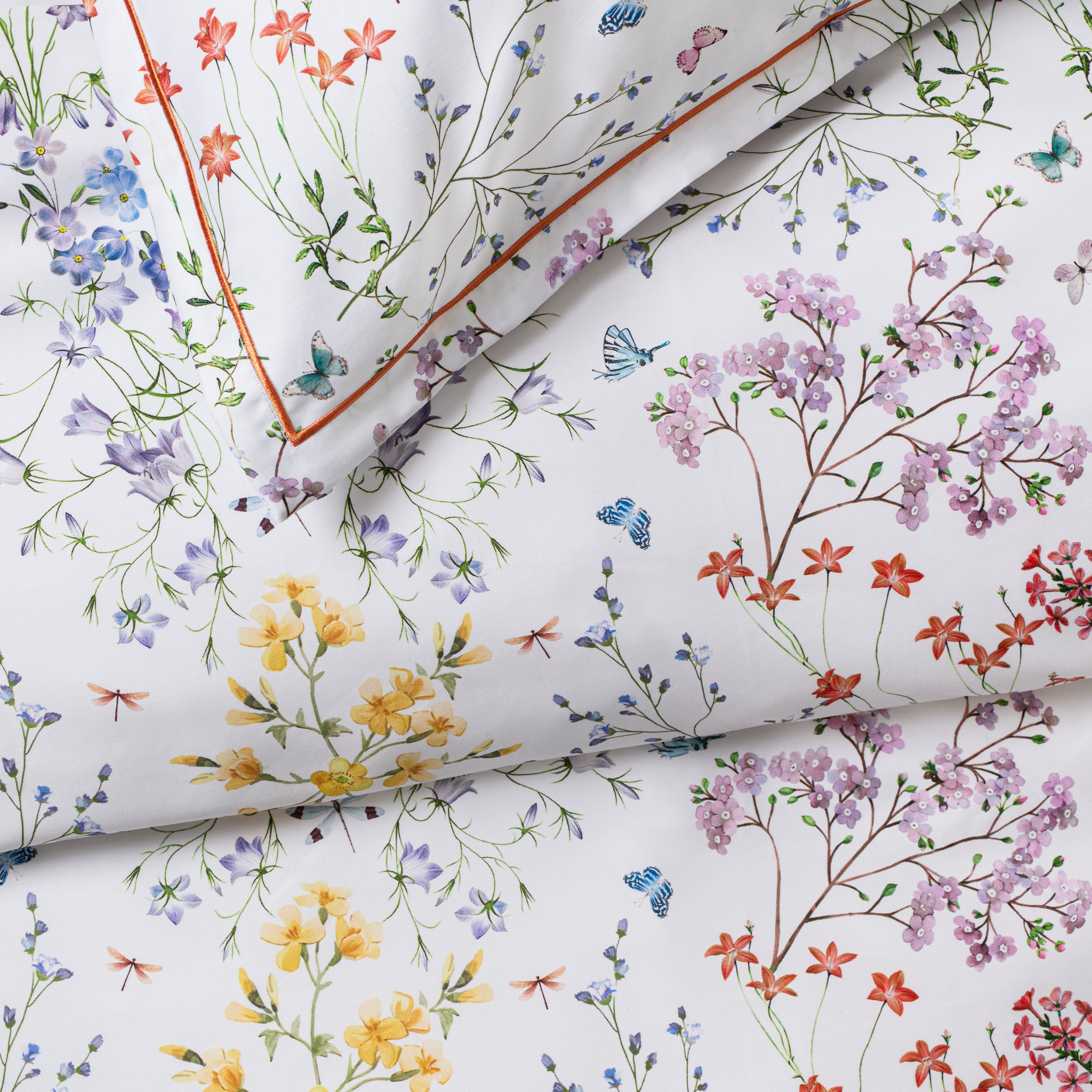 Enjoy a luscious garden in your bedroom with Eden! This fully printed ensemble—duvet, shams, and sheets—is filled with whimsical butterflies and colorful wildflowers that evoke the feeling of springtime, no matter the season: fresh, vibrant, and full of life.